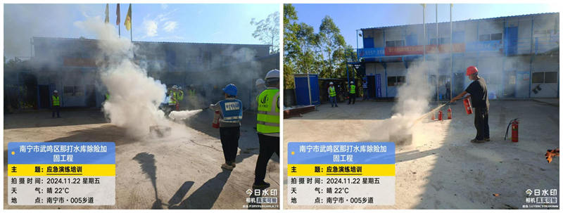 武鳴區(qū)那打水庫除險加固工程項目部開展下半年消防應(yīng)急演練活動
